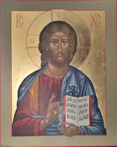 Le Christ est représenté sur cette icône en « Pantocrator », c’est-à-dire « Tout-puissant ». C’est une représentation escatologique de Jésus qui se révèle comme Dieu, dans la parousie, à la fin du monde.