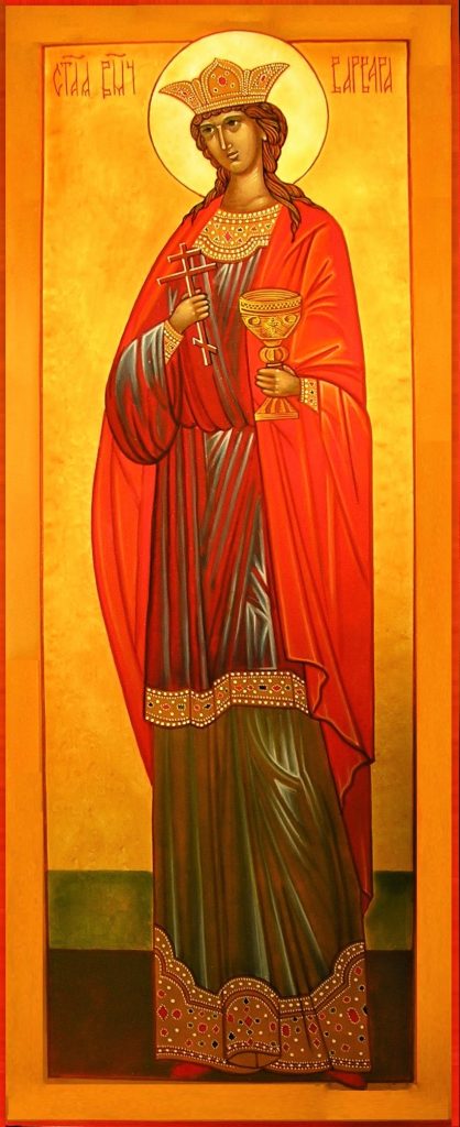 Sainte Barbe ou Barbara est une sainte martyre fêtée le 4 décembre par les orthodoxes (qui la considèrent comme une mégalomartyre) et les catholiques. Elle a connu une vénération importante à partir du VIIIe siècle, en particulier dans l’Orient chrétien.